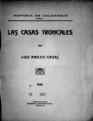 Luis Urbano de Amesti Casal (1892-1992) fue un historiador y escritor. En 1926 publicó el primer tomo de su nunca terminada Historia de Colchagua, bajo el título Las casas troncales.
